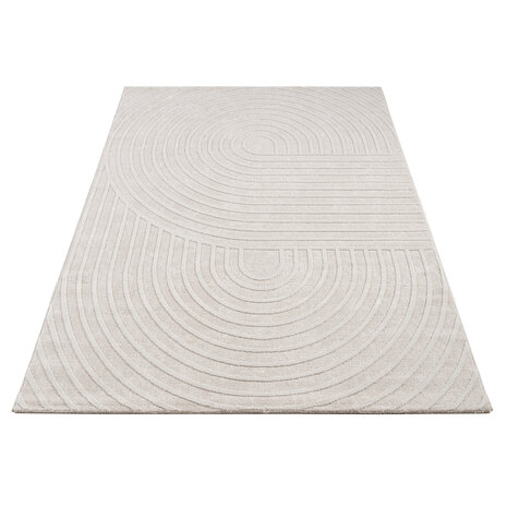 Deze moderne laagpolige vloerkleden transformeren je woonruimte met een warme, uitnodigende ambiance en een subtiel 3D-geometrisch patroon dat elke kamer een speels accent geeft. Het elegante design in een lichte crèmekleur past moeiteloos in zowel een minimalistisch Scandinavisch interieur als in een speelse Boho-chic setting – een ware traktatie voor je zintuigen.